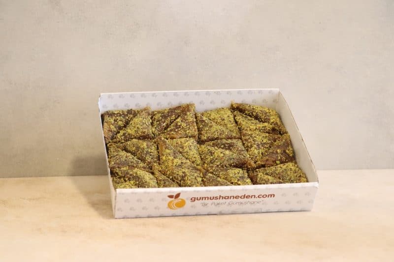 Antep Fıstıklı Muska Tatlısı konuklarınıza rahatlıkla ve güvenle ikram edebileceğiniz bir tatlıdır. Bildiğiniz gibi Gümüşhane pestil tatlılarının ana vatanı ve kentin tescilli ürünüdür.