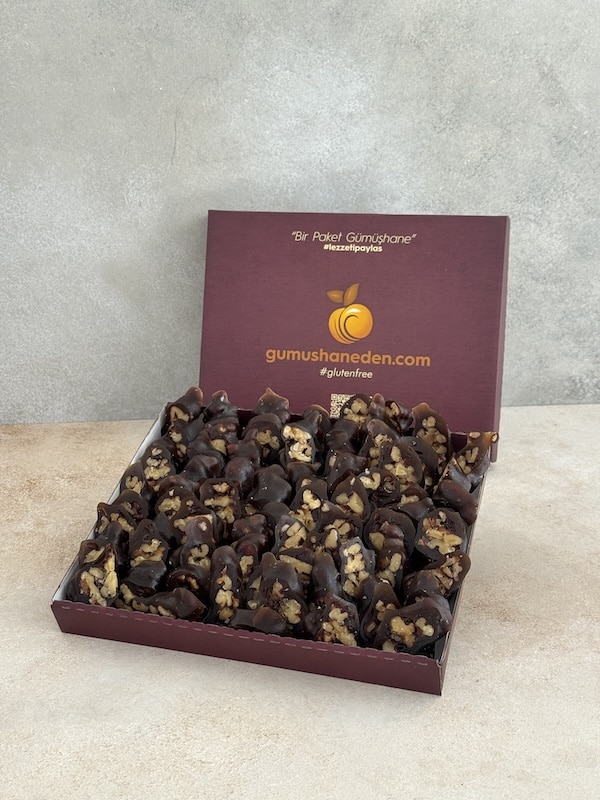 Glutensiz & Şeker İlavesiz Klasik Köme (Cevizli Sucuk), Türk Patent Enstitüsü tarafından verilen Coğrafi İşaret Belgeli olarak üretilen enerji, vitamin ve mineral değeri oldukça yüksek, özellikle sağlıklı beslenmede oldukça önemli Gümüşhane’ye özgü geleneksel gıdalardan biridir.